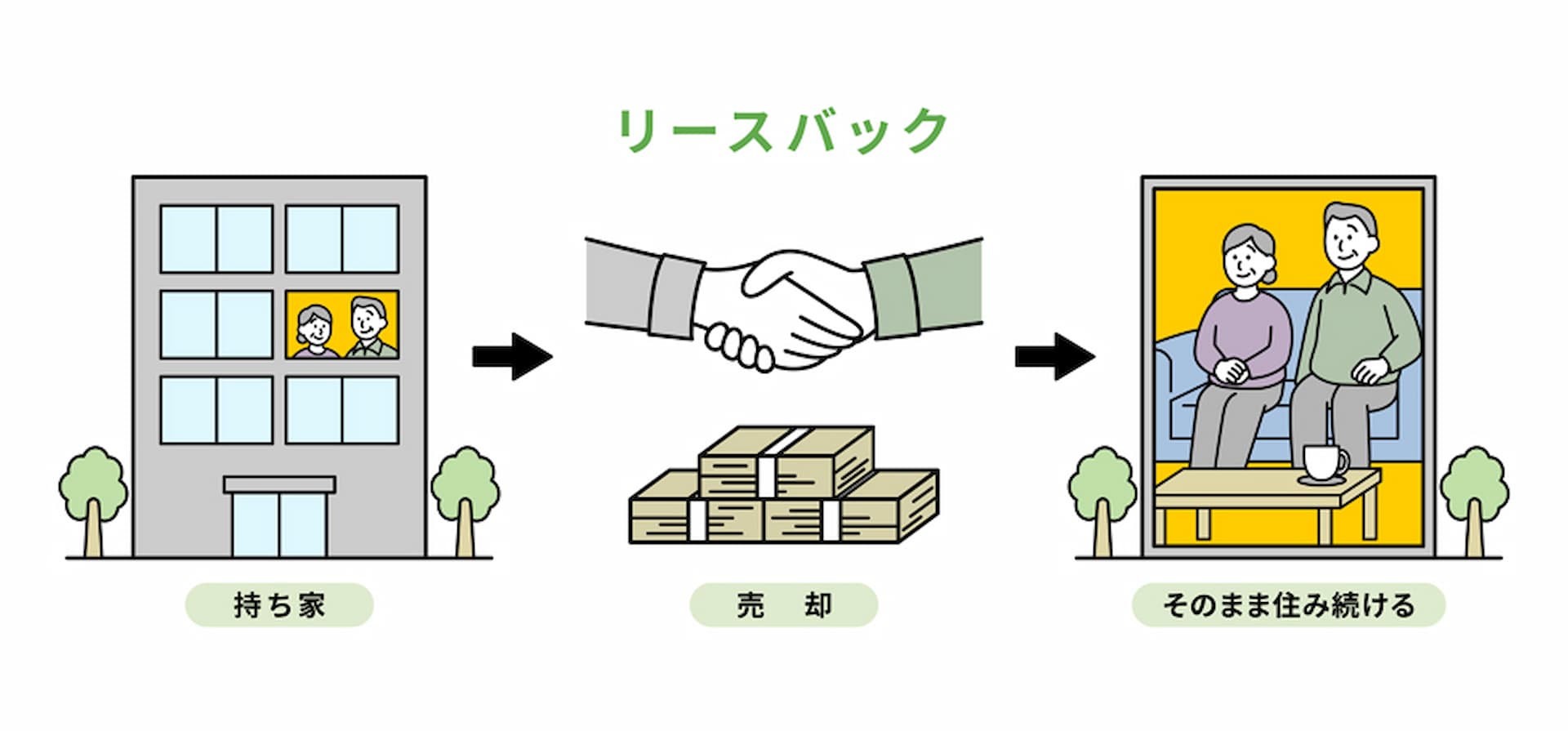 「リースバック」は、不動産会社などリースバック運営業者と個人との間で、「売却」と「賃貸」というふたつの契約を同時に締結する不動産活用法です。ご自宅を売却した後も、家賃を支払うことで愛着ある我が家に住み続けることができます。住宅ローンが残っていても、リースバックの利用は可能です※。近年、「老後資金の確保」や「相続対策」、「住み替え資金の準備」など、幅広い目的で活用されています。