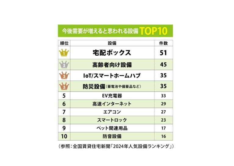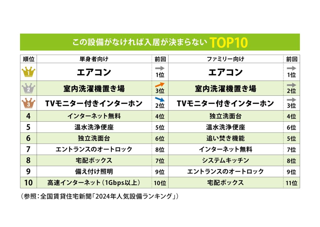 「入居者に人気の設備ランキング2024」では、「入居希望者に敬遠される設備TOP10」も紹介されました。