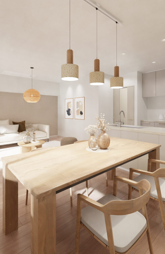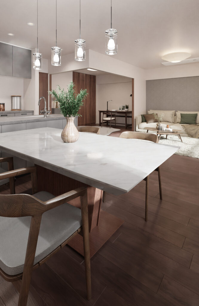 上質感のある挽板フローリングを採用し、温かみのある空間を演出。