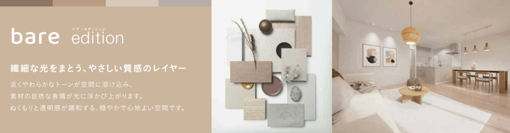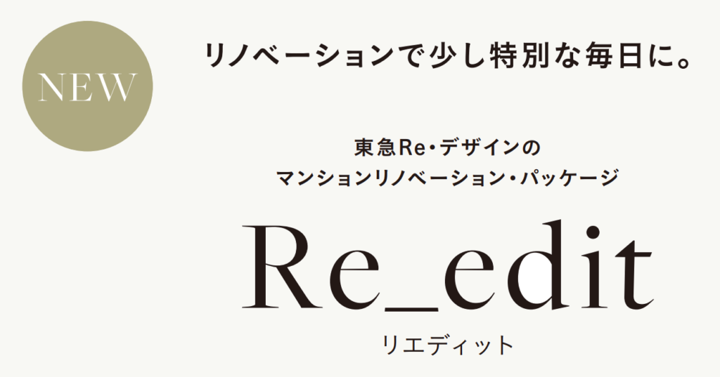 東急Re・デザインの「Re_edit(リエディット)」は、素材・色・質感にこだわった3つのエディションから選べる、新しいマンションリノベーション・パッケージです。プロが厳選した仕様と設備に加え、間取りは自由に変更可能。 毎日の暮らしに特別感を添えながら、安心して長く暮らせる住まいをご提案します。