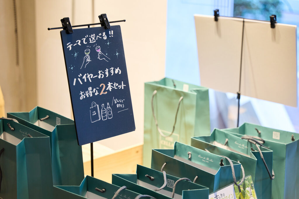 ショップにおすすめのワインが並ぶことも。スタッフに相談してシーンに合うワインならお得に購入できるチャンス。