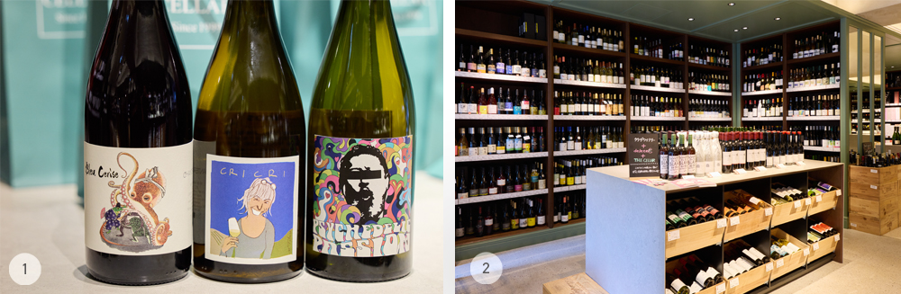 ① ワインとは思えないほどアーティスティックなラベル。ワイン選びに迷ったら、自分の感性に合うラベルで選ぶのもあり!