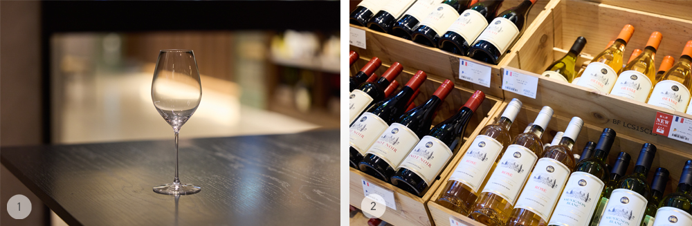 ② ワインを購入するだけでなく、テイスティングサービスのあるショップも。思いがけず好みの1本に出会えることも。