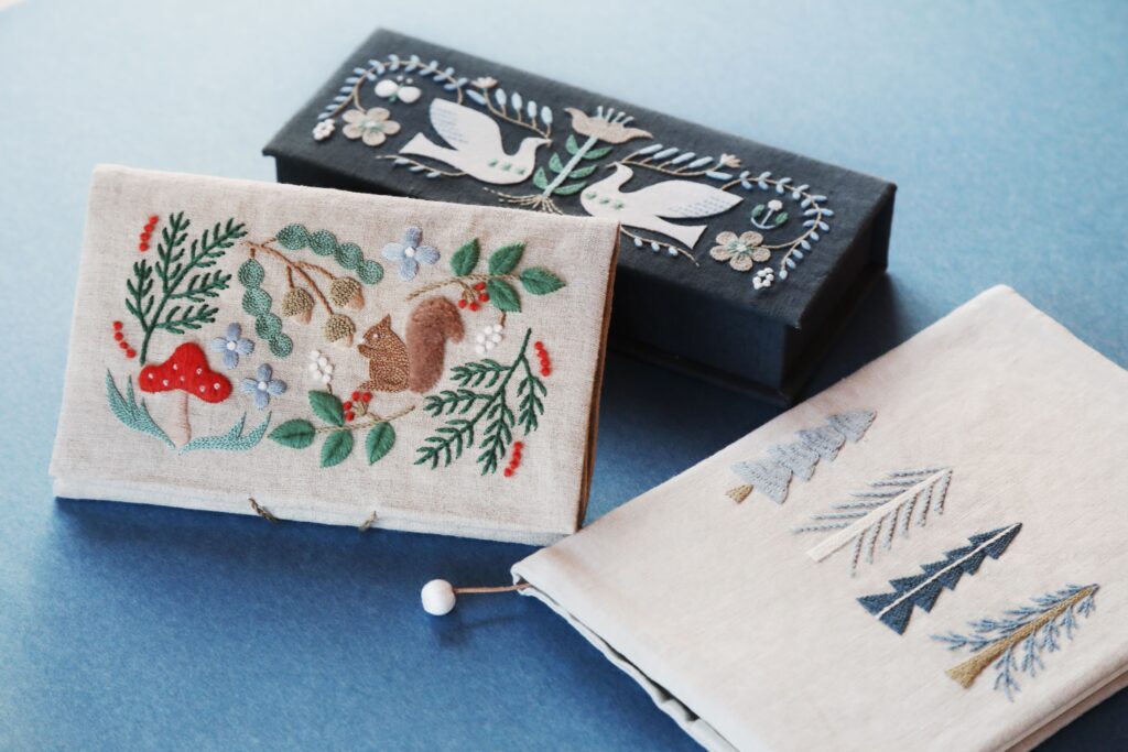 基本ステッチの他にも、「ホールステッチ」「ペキニーズステッチ」といった応用技法を習得することで、刺繍のバリエーションが広がります。ブローチなどのアクセサリーから、ポーチやティッシュケース、ブックカバー、トートバッグなど日常で使える様々なアイテムに応用することができます。子どもの持ち物にワンポイントの刺繍をしたり、お友だちにプレゼントを贈るのも素敵ですね。
