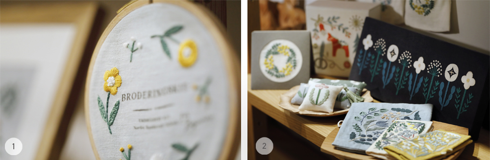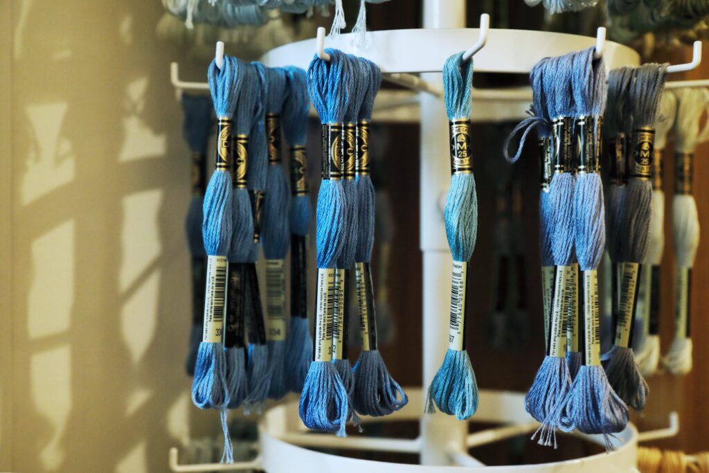 ③ 美しい色の刺繍糸が数多く取り揃えられている。色とりどりの糸を使って、布の上に草花や動物の刺繍が生み出されていく