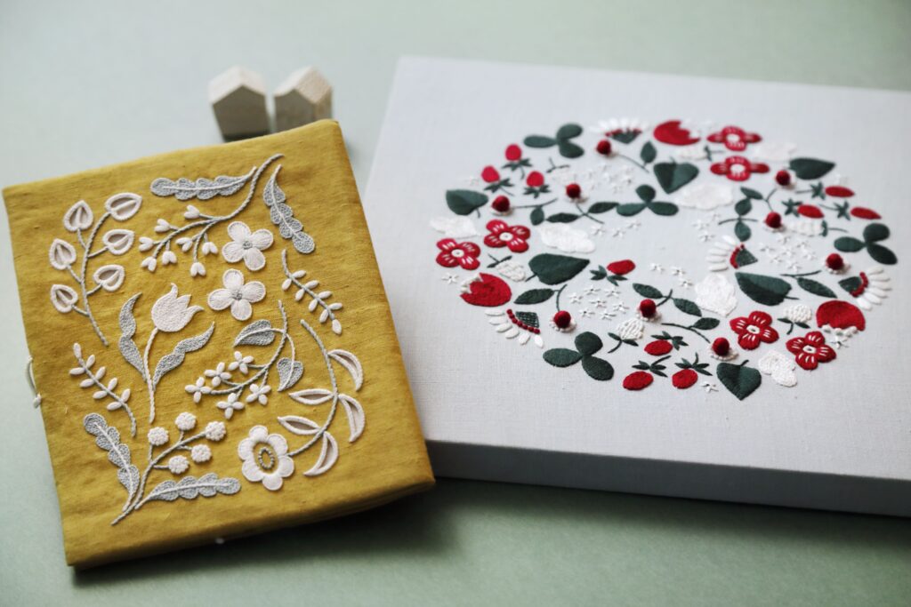 教室では「北欧刺繍入門」レッスンで、「バックステッチ」「チェーンステッチ」「サテンステッチ」など、6種類の基本ステッチを学びます。これらをマスターすれば、アルファベットや草花のワンポイントを描けるようになります。色の組み合わせでバリエーションを広げると、ピンクッション(針山)やニードルブック(針入れ)のような小物を仕上げることができます。