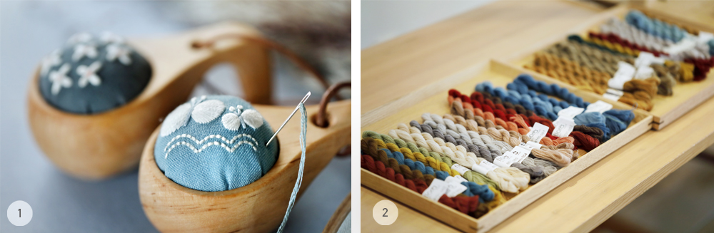 ・刺繍糸:色が豊富なフランスのDMC社の糸や、ふっくらした風合いのウール糸を用意